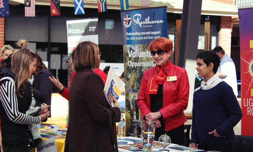 Attend the National Student Volunteer Week Festival on campus. Here you can learn more about volunteering and upcoming student-led projects, make a one-on-one appointment with the university’s volunteering team, enjoy the Community Sleepout fundraising BBQ and register as a blood donor during the launch of the University of South Australia’s student-led Blood Drive!