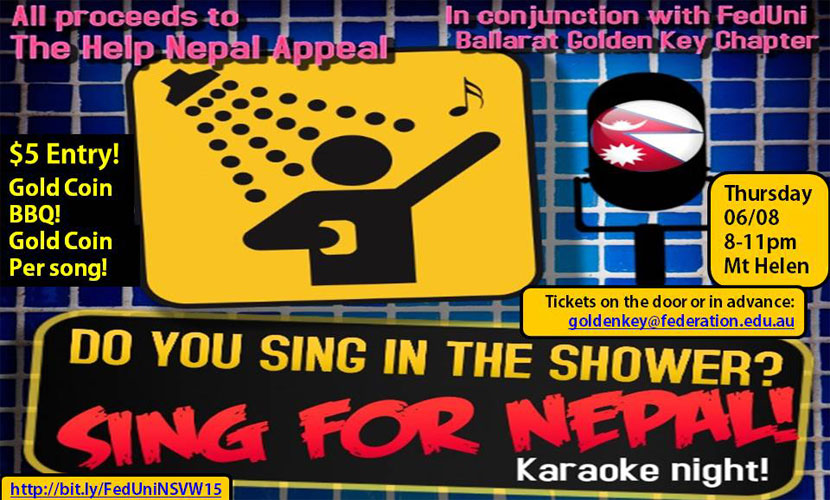 Image no longer - Sing For Nepal in an 80s-themed karaoke night where all the proceeds go to The Help Nepal Appeal, a fundraising appeal set up by one of their amazing student volunteers. Entry is $5, then it's a gold coin per song and a gold coin BBQ. There will also be games, raffles and even a lip-sync battle to keep you entertained!